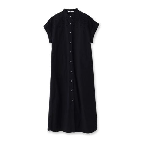 シャツの凛々しさとレースの女性らしさを合わせたデザインで、一枚で存在感たっぷりのロングシャツドレスです。