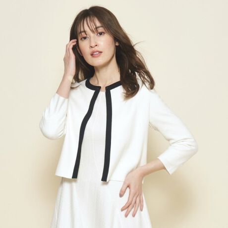 ノーカラージャケットのようなきちんと感に、ニットならではの抜け感がプラスされ、楽な着心地とこなれたスタイリングをお楽しみいただけるアイテムです。