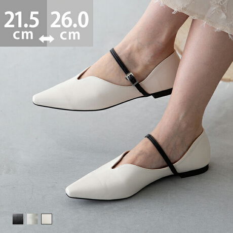 【デザイン】: ロングノーズスクエア 甲ストラップ Uカット Vカット パンプス フラットシューズ ぺたんこパンプス フラットパンプス ぺたんこ靴 走れる 履きやすい 走れるパンプス