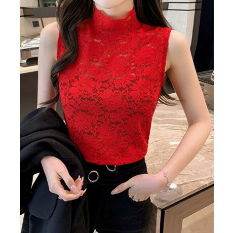 上品でフェミニンな雰囲気を演出する、総レースのノースリーブトップス。