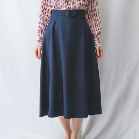 ベルトデザインがポイントになったミデイフレアスカート。ウエストマークに映えるベルトがスタイリングにメリハリ感をプラス。ウエスト位置を高く見せ、脚長効果が得られるのも魅力的なポイントです。ゆたかに広がるフレアシルエットで、女性らしいエレガントなムードを演出。洗練ムード漂うデザインで着回しもしやすく、オンオフ問わず様々なシーンにも活躍してくれるワードローブの頼れる味方です。