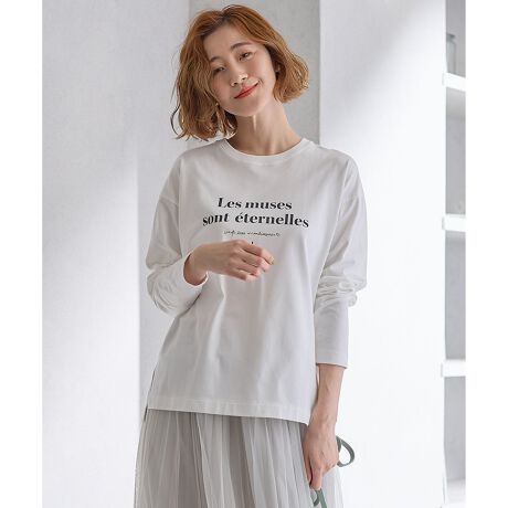 23区のブランド30周年にあわせ、歴史を振り返りデビュー当時のアーカイブモチーフである筆記体のロゴをさりげなく施したロゴロンT。ブランドイメージの象徴であり、その着こなしや生き方に影響を受けた数々のミューズたちへのを想いを込めて、「ミューズたちは永遠の憧れ」のフランス語ロゴでオマージュを送ります。カラーは、いずれも合わせやすいクリアなホワイト(#001)、シックなブラック(#005)の2色展開です。