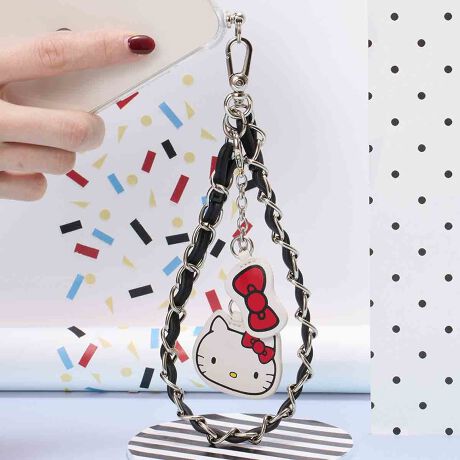 ハローキティとリボンのダイカットチャームがついたストラップ