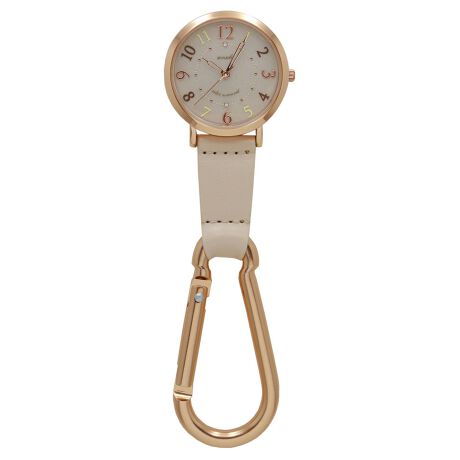大人カワイイデザインが嬉しい♪ソーラーウォッチ「ルクス」が新発売♪【電池交換不要♪】光を当てるだけで充電できるソーラーウォッチ。定期的な電池交換不要なので手間もなくとってもエコ◎【カバンやベルトループに付けて】アクセサリー感覚でベルトループやバッグの金具に片手で装着できる、レバー式のカラビナ付き。肌に触れないから敏感肌の方やアレルギー持ちの方にもおススメ♪【仕事や作業用にも】カラビナで時計を逆さまにぶら下げて使用するのがポイント。バッグやベルトに取り付けたまま、外さずにそのまま時間が確認できて便利!【見やすい文字盤】文字盤の数字には、視認性の高いフォント(字体)を採用。見やすい文字盤は、忙しい現場でもしっかり時間を確認。【上品なデザイン】くすみカラーとゴールドパーツが上品な雰囲気を演出。デイリー使いはもちろん、オフィスやビジネス用にもピッタリ☆【正確な時を刻む日本クォーツ】安心の日本メーカーで作られた日本製のクォーツを採用。いつでも正確な時間を確認できるのも嬉しいポイント。