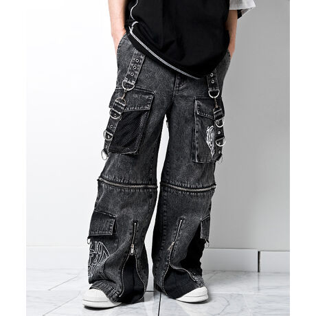 ボンテージパンツとカーゴパンツのデザインを両立したデザイン性の高いワイドパンツです。