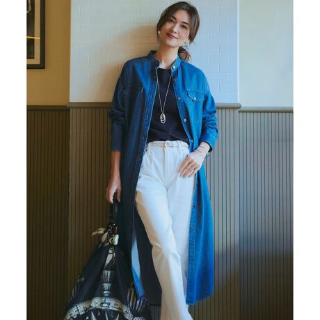 あれこれ悩まず着こなせる、バンドカラーのシャツワンピース。胸元のポケットがアクセントになっており1枚着としても、前をあけて羽織としても使える便利アイテム。首元がすっきり見えるバンドカラーなので重ね着もしやすく、ロングシーズン活躍してくれます。カーディガン合わせやニットベストとの重ね着、羽織アイテムとしての着こなし、アクセサリーでのアレンジなど、気軽にスタイル変化も楽しめるアイテムです。カラーは、爽やかなライトインディゴ(#071)と、こなれ感のあるインディゴ(#072)の2色展開です。