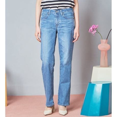 腰まわりゆったり、ヒザ下まっすぐなストレート。前身をやや小さめに設定し、スソまでまっすぐにひかれたパターンは、脚を細くまっすぐ魅せてくれる美脚シルエット。SKY38(HANATAPEREDSTRAIGHT)よりもゆったり、SEA33(ELSASTRAIGHT)よりもすっきりとご着用いただけるシルエットです。