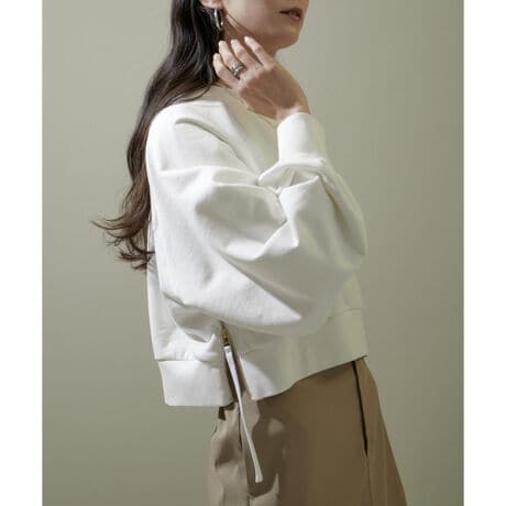 【サイドジップがアクセントに。スッキリとしたショート丈とボリュームスリーブが今年らしく決まるスエットプルオーバー】