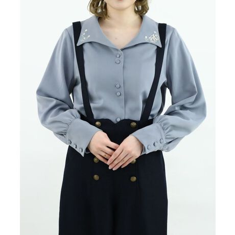 カリグラフィーローズ刺繍衿ブラウス【洗える】
