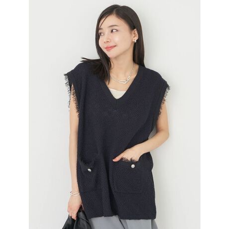 ツイード調の生地でクラシカルな風合いを放つニットプルオーバー。