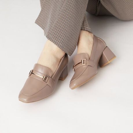 安定感のあるブロックヒールで、疲れにくい5cmヒールのローファーパンプスです。