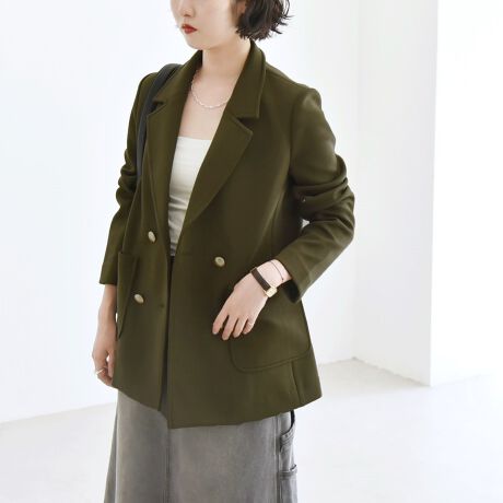 様々なシーンで着回せるダブルフロントのテーラードジャケット。