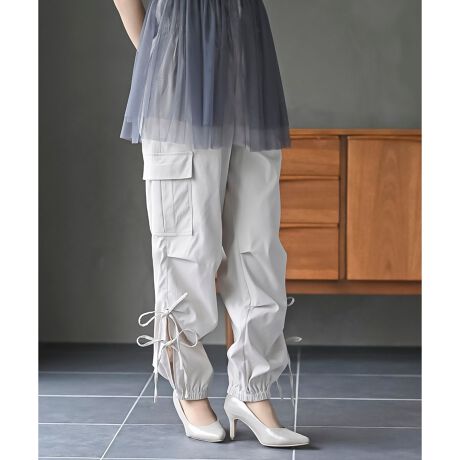 ほどよいゆとりとウエストゴムのリラクシーなボトムスです。
