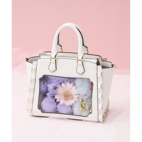 ◇& chouette(アンドシュエット)の《推し事バッグ》クリアポケット付きぬいぐるみバッグ好きをぎゅぎゅっと詰め込める♡クリアポケット付きの【推し事バッグ】シリーズからぬいぐるみバッグが新登場!シュエットの大人気の推し事バッグからご要望の多かったぬいぐるみバッグが登場しました★ささやかなフリルやさり気ないビジューが可愛いハンドバッグ。しかし実は!あなたの「好き」を詰め込めるポイントがちりばめられています☆♡オシャレに?それとも派手に?好きをワタシらしくディスプレイできるクリアポケット♪♡クリアポケット部分はマチがしっかりあるので推しのぬいぐるみと一緒にお出かけする時に大活躍すること間違いなし!♡身長12cm×幅7cm×厚み7cmくらいの子であれば2人一緒のお部屋に入ることができます★♡移動用のお部屋としてデコレーションしてお出かけしてみては?クリアポケット内部の缶バッジ等を取り付ける台はアレンジしやすいよう、厚手の素材になっています。バッグ本体とスナップボタンで固定されており、簡単に取り外してアレンジすることが可能です!小さく見えて500mlのペットボトルを寝かせて収納できる容量も確保!ショルダーベルト付きなので2wayで使用可能です。♡バッグ正面右側に付いているDカンと、大きめの金具を使用しているファスナーの引き手にはお気に入りのキーホルダーやチャームを付けて♪可愛さにも、使いやすさにもこだわった推し事バッグは新色の3色を合わせて全7色展開!ぜひ一緒に現場へ連れて行ってください!アレンジクッションサイズ(最大値):幅18cm/高さ16cm推し事バッグ / 推し活 / 魅せバッグ / 魅せバ / デコバッグ / デコバ / 痛バッグ / 痛バ / 参戦服 / ライブ / 現場 / コンサート / オタク / オタ活 / ヲタク / ヲタ活 / ぬい活 / ぬい主------------------------------------------------------<価格改定のお知らせ>2025/3/25より原材料価格の高騰により価格改定をさせて頂きます。価格改定後にご購入いただいた商品に関しまして、旧価格の商品タグが混在している場合がございます。ご