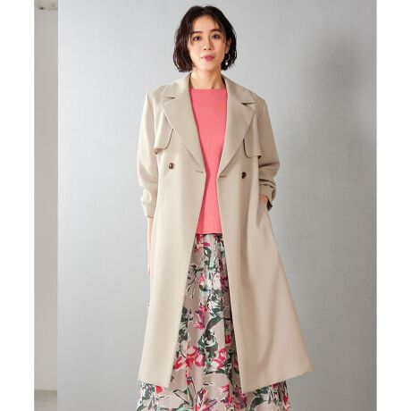 とろみのある柔らかな素材と軽い着心地が人気のロング丈トレンチコート■デザインしなやかなドレープ感と程よい抜け感を感じられるロング丈のトレンチコートです。ダブル前のたっぷりとしたデザインにすることで、羽織った時のドレープ感が華やかな印象です。共のベルトでウエストマークした際には、前身頃のフラップと背中に大きくとったアンブレラヨークにたっぷりとしたボリュームが出るので後ろ姿も華やかになります。オンオフ問わず着て頂ける汎用性の高さもポイントで、どんなボトムにも合わせやすいロング丈は様々なシーンで活躍します。■素材肉感がありながらも軽く、程よい反発感とドレープ性を兼ね備えた、身体に柔らかくなじむ素材です。さりげない陰影を感じる表面感がカラーに奥行を持たせています。■同素材アイテムミドル丈トレンチコート(JKW7CM0202)