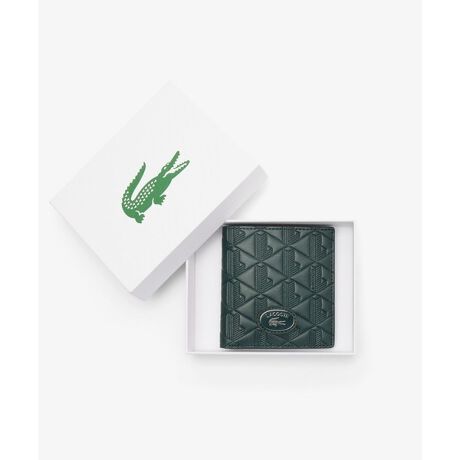 [型番:NH4575MR]上質感漂う素材をモノグラム柄で仕立てたスタイリッシュな二つ折りウォレット・ハイクオリティなスプリットレザーに型押しでモノグラム柄を配置・カードスロット6つ、フラットポケット2つ、札入れを備えた高い収納力・ワンカラーで統一したソリッドな佇まいをメタルワニロゴプレートで味付け・大切な情報を守るRFID機能搭載10x10.5x1.8cm
