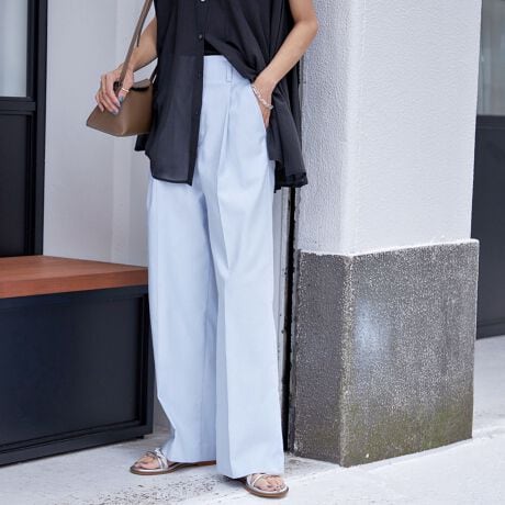 タックがポイントのワイドパンツ。