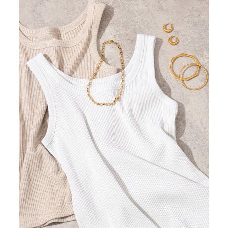 メランジのニュアンスカラーにラメが入ったトレンド感のあるリブタンク。