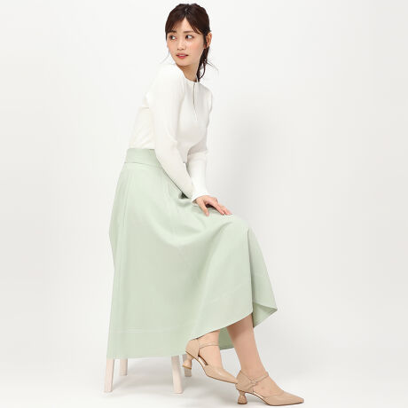 バイカラーステッチが表情感をプラスするスカート。ふんわりと広がるフレアシルエットで、やわらかい印象を演出します。バックのウエストゴム仕様がラクな着心地を実現。ブラウスやカットソーと合わせたコーディネートがおすすめです。