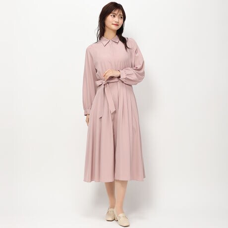 1枚で上品な着こなしを楽しめるシャツワンピース。ガーリーなアクセントになるウエストリボンがポイントです。ボタンの見えないフライフロント仕様で、すっきりとした印象を演出。ジャケットをプラスしたシーズンらしいスタイリングもおすすめです。