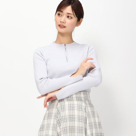 首元のジップアップがワンポイントになるニット。縦のリブ素材で仕立てられ、フィット感のある着心地を演出します。袖口のスリットがさりげないアクセントに。シンプルなルックスで着まわしやすく、コーデの幅が広がるアイテムです。