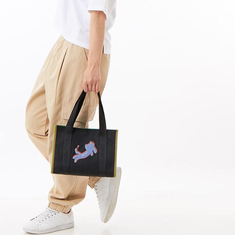型崩れしにくい帆布スポーティなキラネコの刺繍が目を引くバッグです。