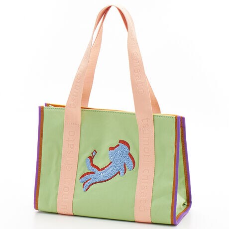 型崩れしにくい帆布スポーティなキラネコの刺繍が目を引くバッグです。