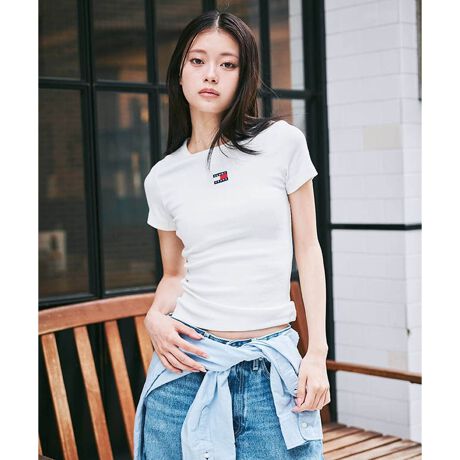 スリムバッジリブTシャツ