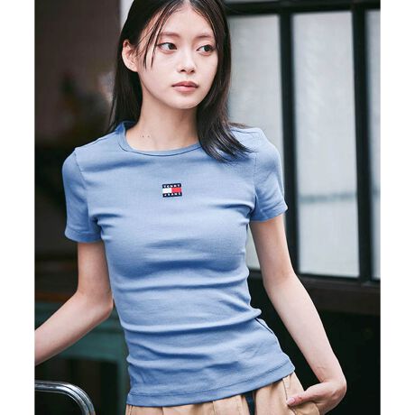 シンプルながらもスタイルアップが叶うスリムTシャツ。リブ地を使用することでボディラインにフィットさせつつ、ストレスの少ない着心地を実現しています。フロント中央にはアクセントとなるバッジロゴを配置。1枚着でもインナーとしても活躍するため、オールシーズン着用できます。