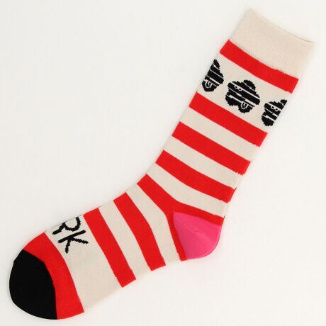 太めのボーダーと「パーキー」をあしらった爽やかなマリンテイストのソックス。