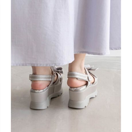 「トワル ドゥ ジュイ」のプリントを中敷に施した、華やかなリボンスポーツサンダル。