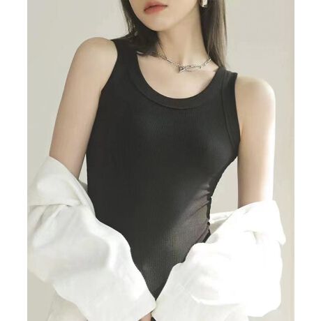 シンプルなデザインが、より大人の雰囲気を醸し出すUネックリブタンクトップです。