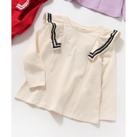 セーラー衿が肩フリルになったTシャツ。裾にかけてふわっと広がるシルエット。コーディネート次第でカジュアルにもキュートにも着こなせるアイテムです◎WEB限定だからこそ実現できるプチプラ価格もうれしいポイント♪