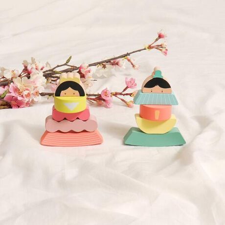 (ひな祭り)積み木にもなる木製オブジェ ひな人形