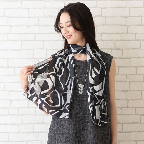 ■モノトーンの幾何プリントが映える、MADE IN ITALYストール■