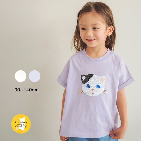 【branshes×Cat’sISSUE】キュートな仔猫のお顔がスパンコールで胸元にデザインされている半袖Tシャツです♪