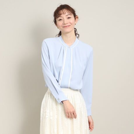 【オフィスに/さらりとした肌触り/ジャケット合わせもきまる】配色タックブラウス