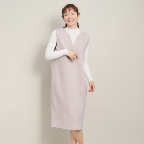 ニットやブラウスなど様々なトップスとのレイヤードが楽しめ、フロントのVネック開きが女性らしさを後押ししてくれます。