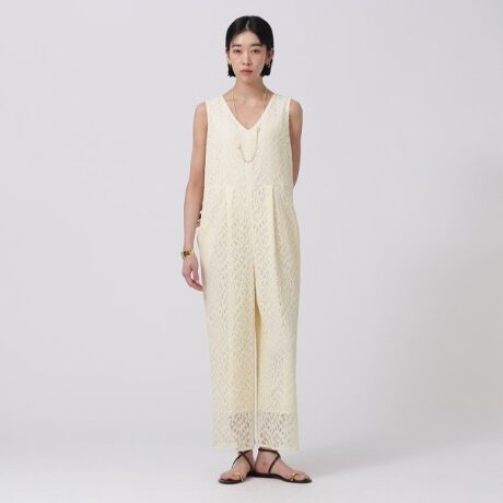 表面感のあるレース素材が特徴的なオールインワン。