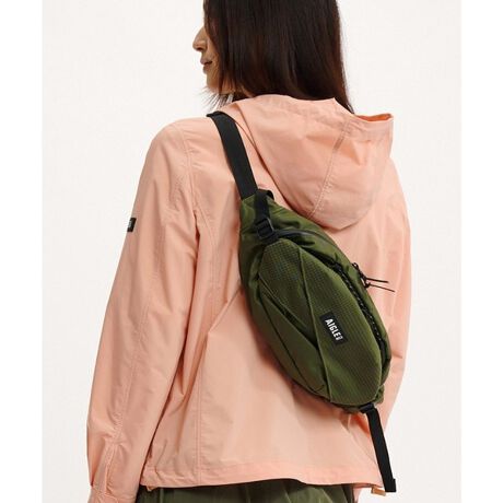 環境にやさしいリサイクルナイロンを使用したコンパクトなバムバッグです。休日のお出かけやワンマイルコーデにもおすすめ。コンパクトながら必要なものを充分に持ち運べる収納力を備えたアイテムです。サブバックとしても使えます。