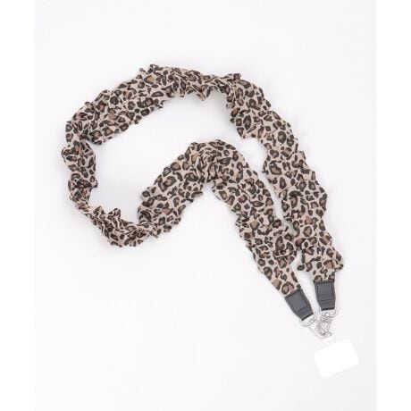 メタリックな素材と、くしゅくしゅとしたシャーリングのボリュームが目を引くスマホストラップです。