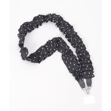 メタリックな素材と、くしゅくしゅとしたシャーリングのボリュームが目を引くスマホストラップです。