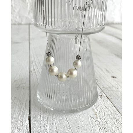・大粒のパールビーズときらめくロンデルをフロントに並べた、ラグジュアリーなチェーンネックレス。