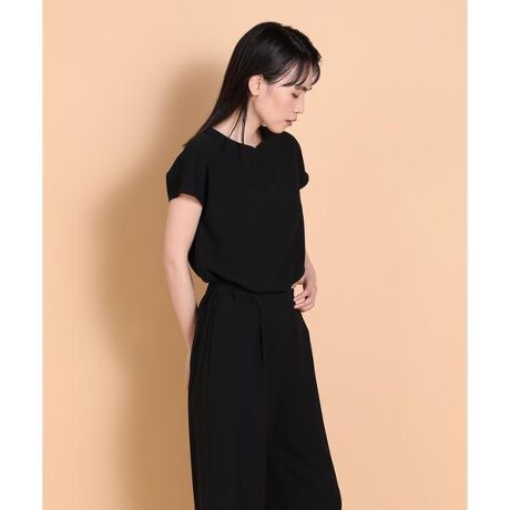 スキッパーネックで首元をすっきり見せるプルオーバーブラウス。シンプルなデザインながら、肩先が隠れる絶妙な袖丈や、前後差のある軽やかな裾のデザインにこだわりました。素素材は、程良いコシとソフトな風合いがある、透けにくいバックサテン梨地ジョーゼットを使用。着心地の良さに加えシワになりにくいイージーケア性、UVカット、吸水速乾、接触冷感等の機能性も併せ持ちます。同素材のパンツとセットアップでの着こなしはもちろん、上品できちん見えするため、普段使いからオケージョンまで幅広く活躍するブラウスです。・裏地なし同素材のパンツ品番:1041161033同素材のジャケット品番:1041141032■サンプル撮影商品■こちらの商品はサンプルでの撮影となっております。実際の商品とは、サイズや色味、素材、デザイン等の仕様が若干変更になる場合がございます。