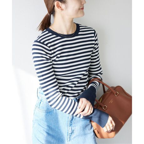 ドライタッチでありながら、しっとりとした独特な風合いのニットで季節の境目に着やすい1枚。