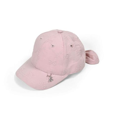 無地リボンレース柄チャーム付きマジックテープキャップ(52~54cm)