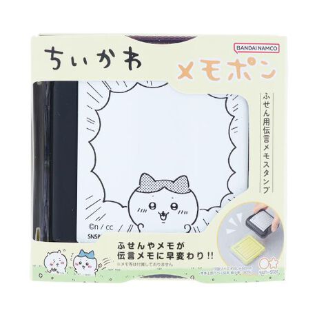 ”ちいかわ”デザインのふせん用伝言メモスタンプ「メモポン」です。お手持ちのふせんやメモに『ポン!』と押すだけで、ちいかわのキャラクターの入ったかわいい伝言メモに早変わり♪シャチハタ株式会社製の便利なスタンパーです。用途に応じて可愛く便利にご使用いただけます。