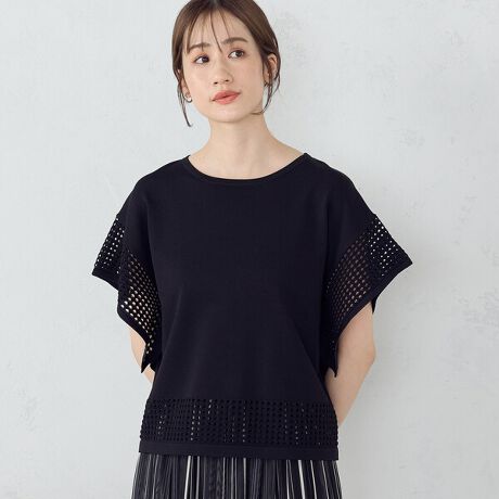 フレアスリーブ メッシュニット