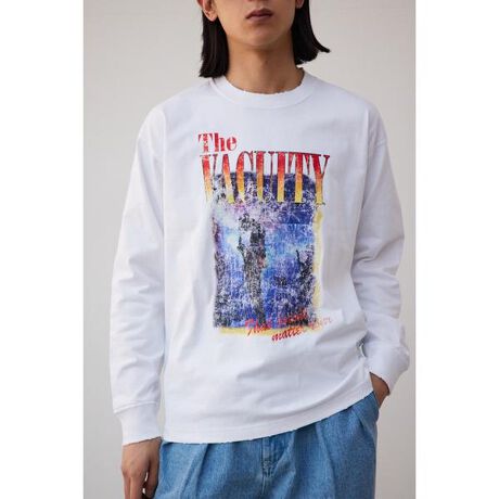 2024 Spring&Summer item ・ところどころにダメージ加工を施したプリントロンT。・首、袖、裾先にダメージ加工を施し、ヴィンテージ感を演出。・プリント部分もかすれ加工にしたことで、古着っぽい雰囲気に。・デニムを合わせたバンドマンスタイルな着こなしがおすすめです。