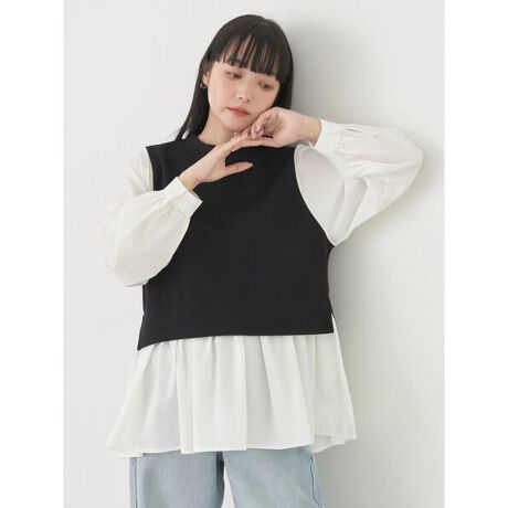 ベストをレイヤードしたような着こなしを楽しめるドッキングプルオーバー。